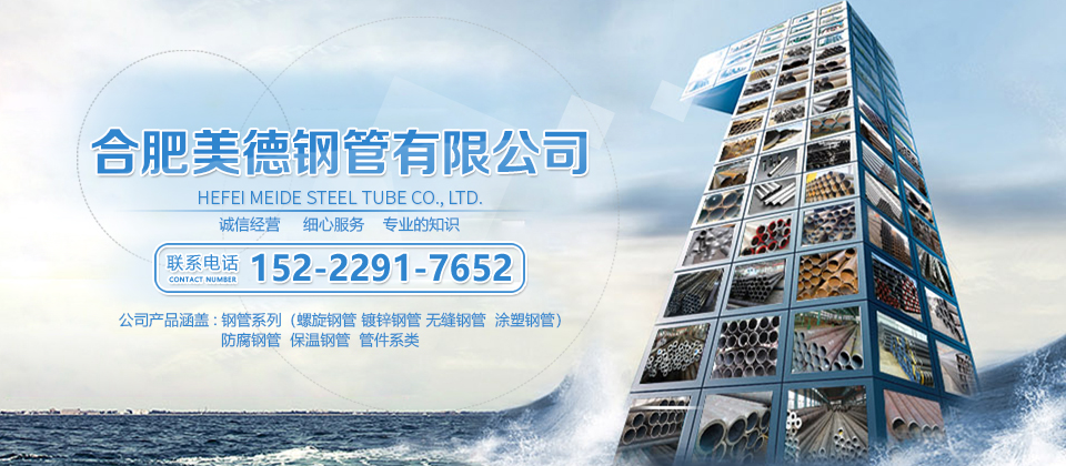 合肥美德鋼管有限公司,主要從事于鋼管,螺旋鋼管,防腐鋼管等業務。公司產品廣泛應用。我們設有完整的質量把關體系。我公司經營的所有鋼材產品均符合國家相關標準,歡迎客戶現場驗貨。我們設有完善的服務,依托我們當地龐大的物流,您的一個電話,我們將保質保量的在您約定的時間內送到您約定的地點。為客戶解決煩惱憂慮。歡迎您的咨詢。